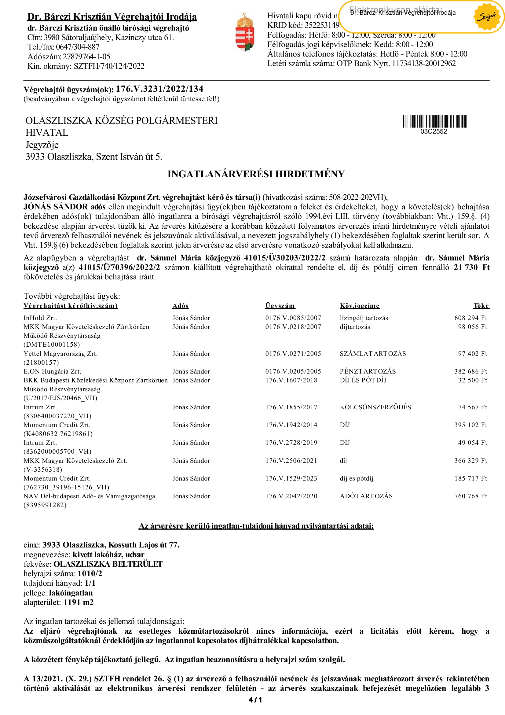 /Ingatlanárverési hirdetmény 1010-2 hrsz.