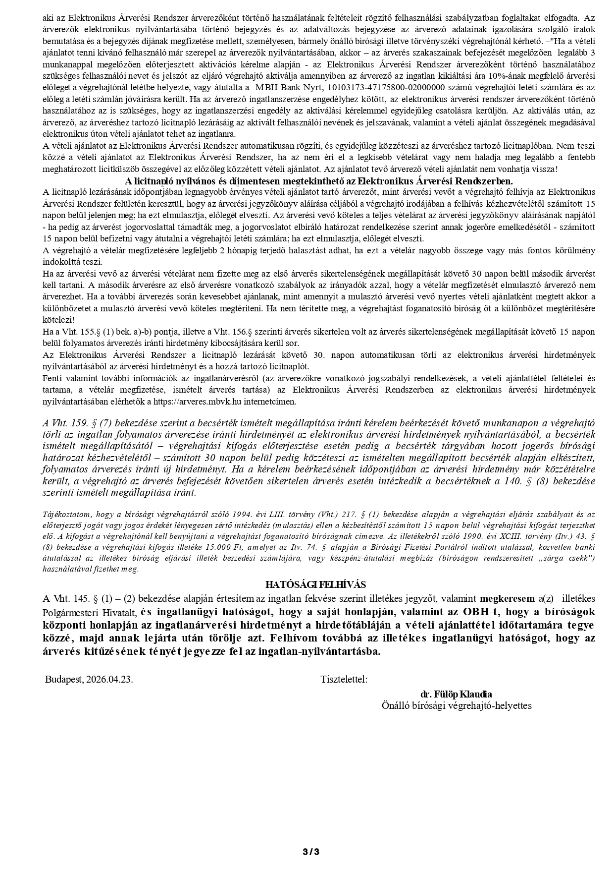 Ingatlanárverési hirdetmény 1010-2 hrsz.